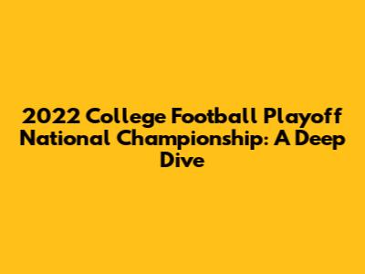 Hey guys! Let's dive deep into the 2022 College Football Playoff National Championship, a game that had fans on the edge of their seats! This championship clash wasn't just another game; it was a culmination of an entire season's worth of hard work, dedication, and nail-biting moments. The atmosphere, the stakes, and the sheer talent on display made it a truly unforgettable event. In this article, we're going to break down everything that made this game so special, from the pre-game buzz to the final whistle, and everything in between. We'll look at the key players, the pivotal plays, and the strategies that shaped the outcome. Whether you're a die-hard college football fan or just someone who enjoys a good sporting spectacle, this recap will give you a comprehensive look at one of the most exciting games in recent memory. Get ready to relive the excitement and analyze the moments that defined the 2022 College Football Playoff National Championship!