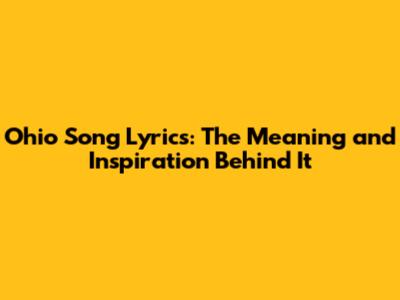 Ohio Song Lyrics: The Meaning And Inspiration Behind It