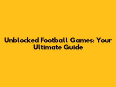 Unblocked Football Games: Your Ultimate Guide